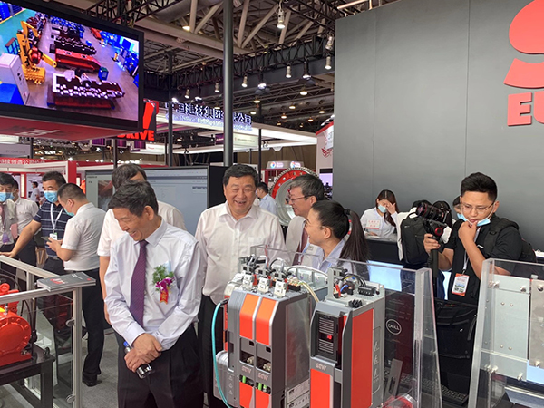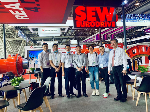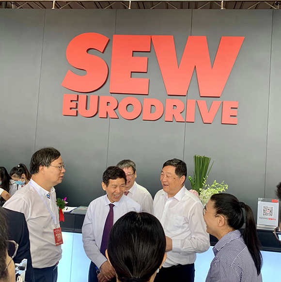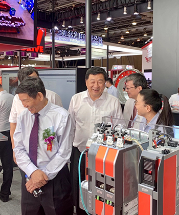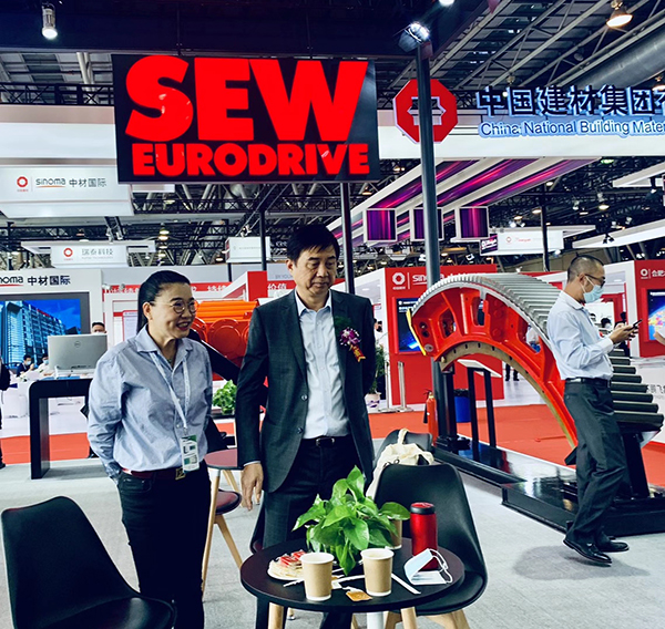 芜湖锦华机械九体育·体育董事长程华陪同中国水泥协会会长海螺集团董事长高登榜书记、中国水泥协会原会长乔龙德、中国水泥协会秘书长孔祥忠等水泥行业大咖莅临SEW展台视察指导。