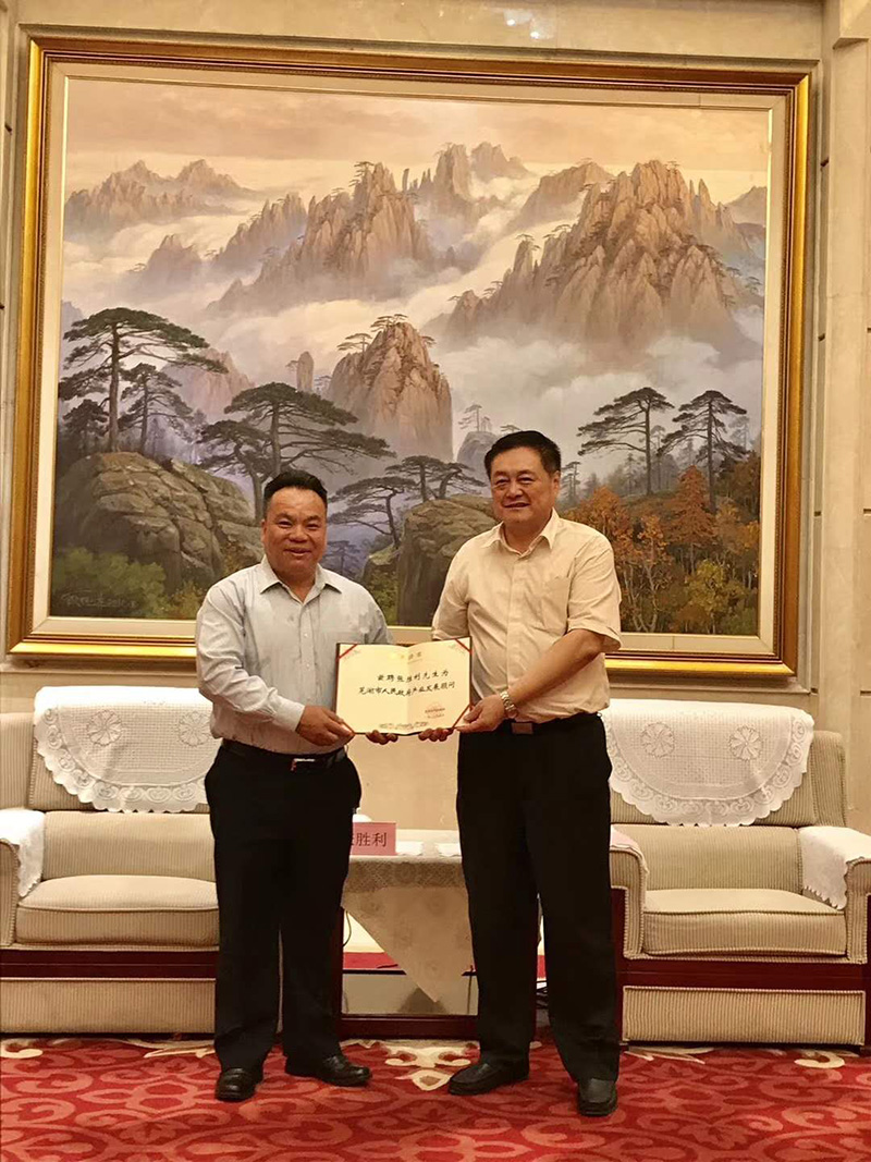 芜湖市委副书记、市长贺懋燮热烈欢迎张总一行的到访考察,市政府秘书长汤德余、市发改委主任张东、市科技局局长杨少华,九体育·体育董事长程华、副总经理程亚斌陪同考察。
